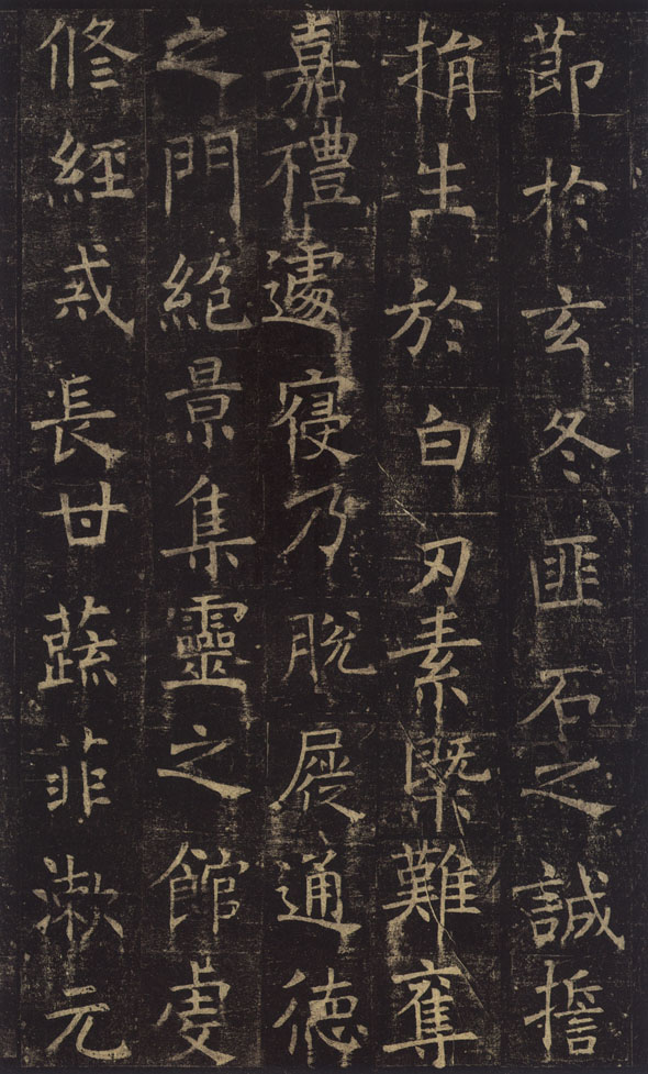 原碑久佚,仅清代李宗瀚藏唐拓本传世。二十面,每面四行满行九字,凡 769 字,今存日本三井听冰阁。此碑运笔多隶法,与《伊阙佛龛》相近——是褚氏早年风格的又一个样本。